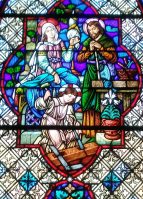 I was recently idling in the Sacred Heart Church in Raleigh when I happened upon one of the stained glass windows depicting the early life of Christ.